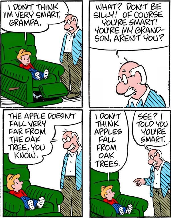 Another great moment of grandparent-grandson bonding happens when Nelson is frustrated with his curly hair, wishing it were “normal.” Opal, ever the wise grandmother, explains that there is no such thing as normal. She comforts him by reminding him he is unique, just like everyone else . This strip is a wholesome reminder of self-acceptance and individuality, packaged with a gentle punchline that makes it both touching and funny. It perfectly shows how grandparents often have the best perspective on life’s little worries.