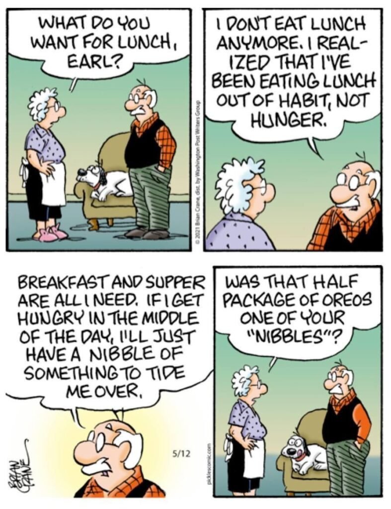The comic “Senior State of Mind” tackles this topic head-on. In the strip, Earl insists to Opal that he doesn’t think of himself as old. He claims that having an “old” mindset is what really makes you feel aged. He is feeling pretty good about his youthful spirit—until the waiter brings the check. The moment the waiter arrives, Earl drops the philosophy and immediately perks up to ask, “Do you have a senior discount?” . This comic is a classic because it highlights the difference between how we feel on the inside and how the world sees us. We may feel young at heart, but we are definitely not too proud to save a few bucks!