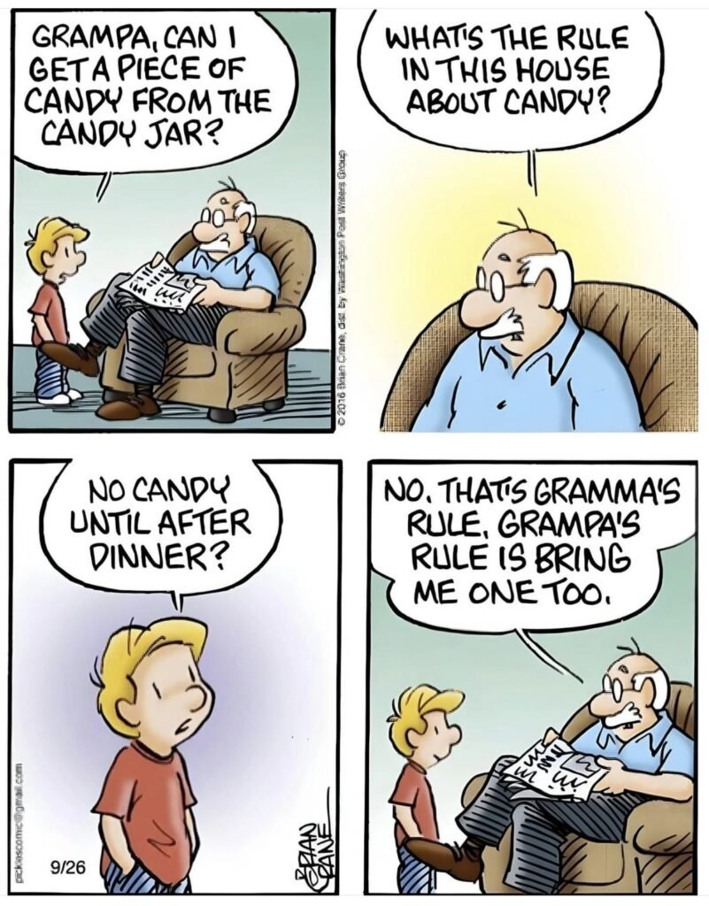 One of the sweetest examples is “Rock Talk.” In this strip, Earl is sitting outside with his young grandson, looking at a rock. Earl gets a little philosophical, explaining to the boy how old the rock is and how it has probably sat there, unchanged, for millions of years. It’s a tender moment of shared wonder. But then, Earl picks up the rock and, just for the fun of it, chucks it into the lake . The deep philosophy is immediately replaced by a simple, goofy act of fun. This comic captures the dual role of a grandparent: they are teachers and storytellers, but they are also kids at heart who love to play.