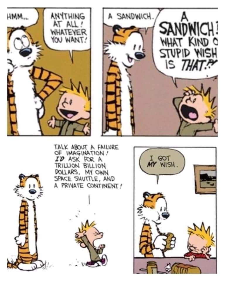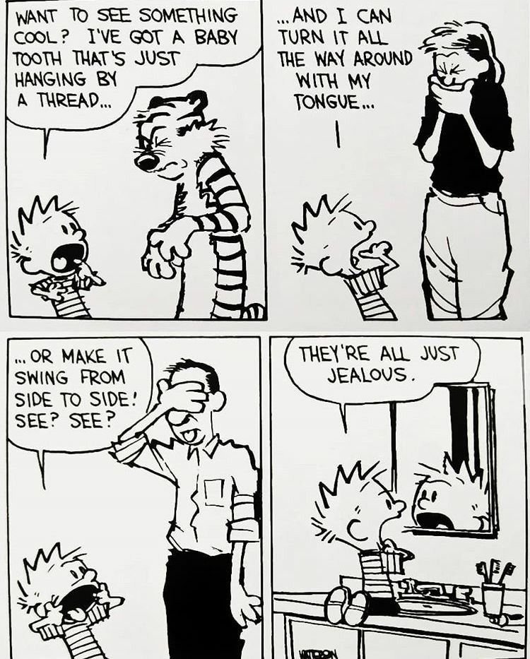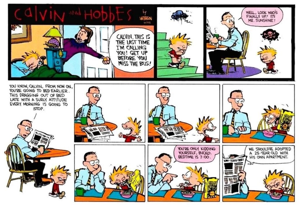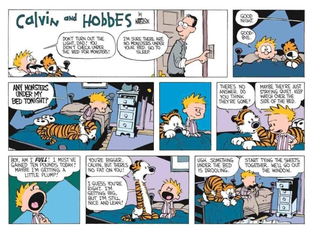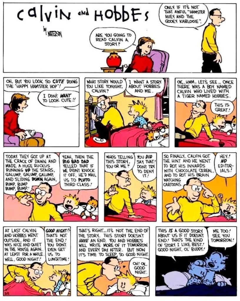So now, I want to turn the page over to you. Which Calvin and Hobbes comic strip is the one that you can never forget? Is it the one with the snowman art gallery? The time they tried to build a transmogrifier? Or maybe a quiet, heartfelt moment between the boy and his tiger that just hit you right in the feels? stories! 👇