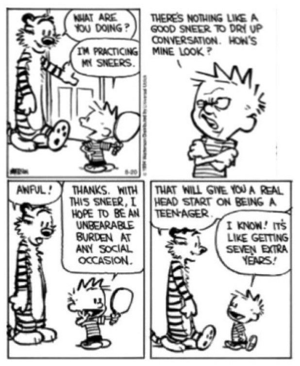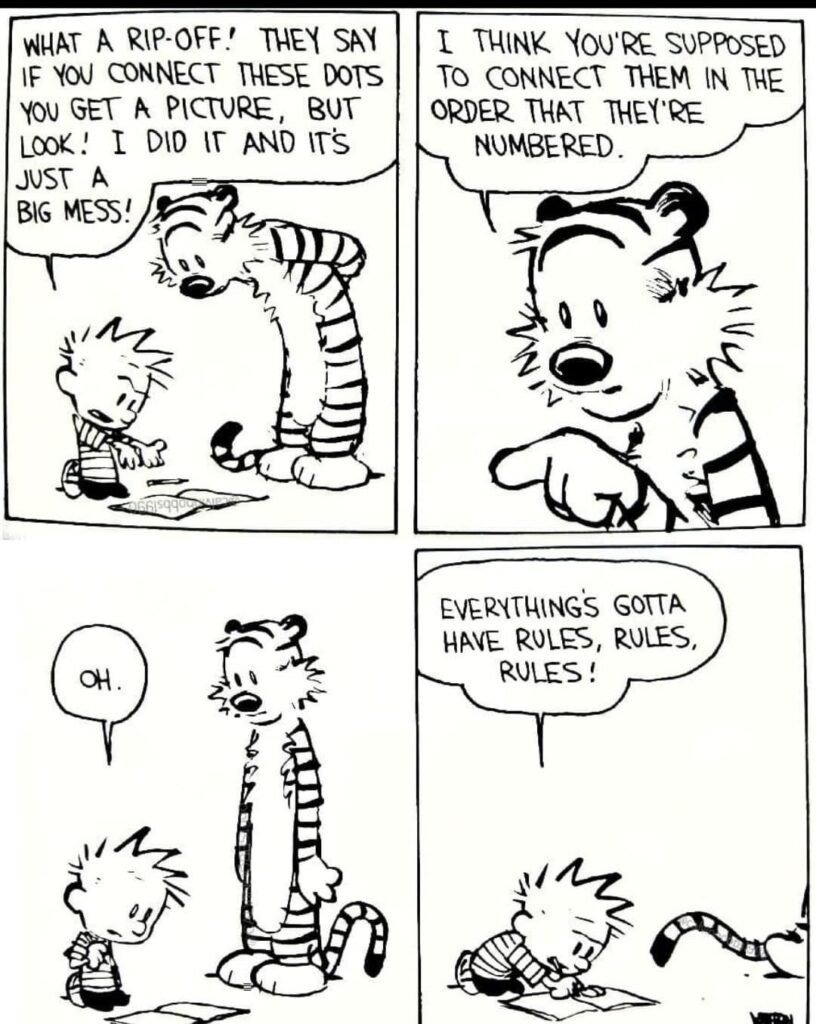 Calvin might be young, but he has a sharp eye for hypocrisy. One of the funniest and most thoughtful parts of the strip is when Calvin questions the rules and routines of the adult world. Why do we have to spend six hours a day in school? Why does he have to eat food that looks disgusting? Why is it that adults can stay up late, but he can’t? By asking these simple questions, Calvin often points out how silly some of our grown-up habits really are. He acts as a tiny philosopher, questioning authority and refusing to accept “because I said so” as an answer .