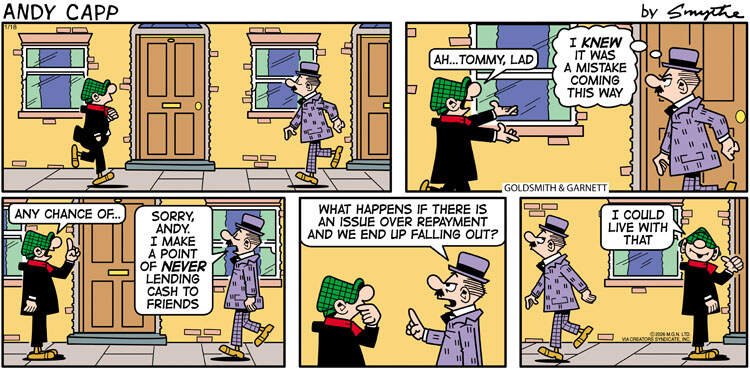 The story of Andy Capp begins with his creator, Reg Smythe, a native of Hartlepool in North East England. Smythe, a former soldier who served in North Africa during World War II, had a knack for capturing the essence of the people he grew up with . In the mid-1950s, the Daily Mirror asked him to create a cartoon character that would appeal specifically to readers in the industrial North. The inspiration struck during a visit back home. Standing at a football match, Smythe saw a man take off his flat cap when it started to rain and tuck it inside his coat. When a young Smythe asked why, the man replied, “You don’t think I’m going to sit in the house all night wearing a wet cap, do you?” . That man’s practical, no-nonsense attitude became the seed for Andy Capp.