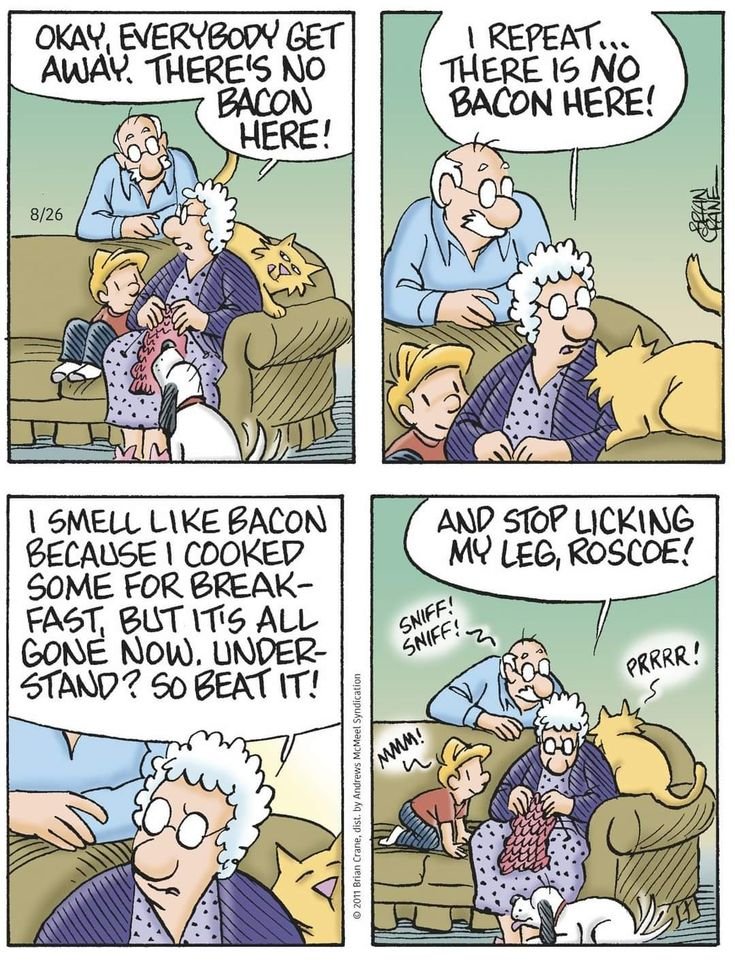 For younger readers, the strip works on a different level. Kids love the antics of Roscoe the dog and Muffin the cat. They also relate to Nelson, the young grandson who navigates his relationship with his slightly-out-of-touch but loving grandparents. The humor is clean, simple, and often visual, making it accessible for children. At the same time, there are layers of witty dialogue and marital jokes that go over a child’s head but land perfectly with adults, allowing the whole family to enjoy the same strip together for different reasons .