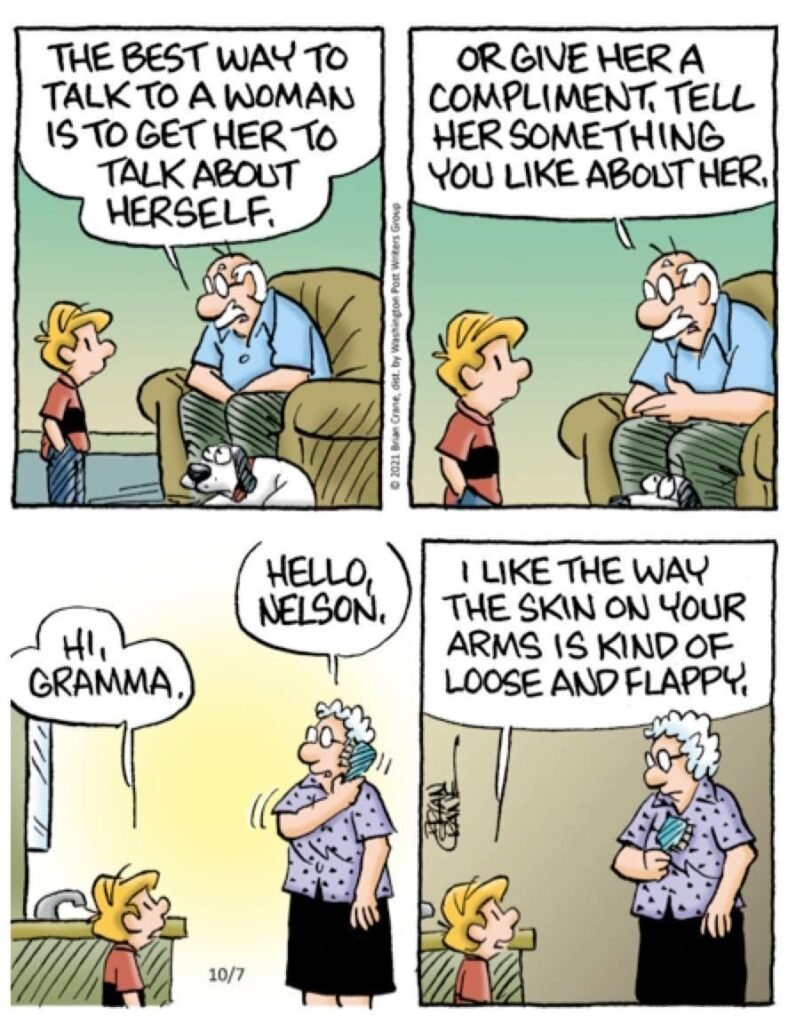 While Earl and Opal are the stars of the show, their grandson Nelson plays a crucial role in capturing the humor of growing old. Through his eyes, readers see how the older generation interacts with the younger one, and the results are often hilarious. Nelson acts as a bridge between the past and the future, and his innocent questions often lead to punchlines that reveal the simple wisdom of children or the playful stubbornness of his grandparents. For instance, when Nelson draws a picture of his grandpa, he decides to “improve” it by adding hair and hiding the bald spot . It is a sweet and brutally honest moment that shows how children see the world—and how grandparents learn to accept themselves through that lens.