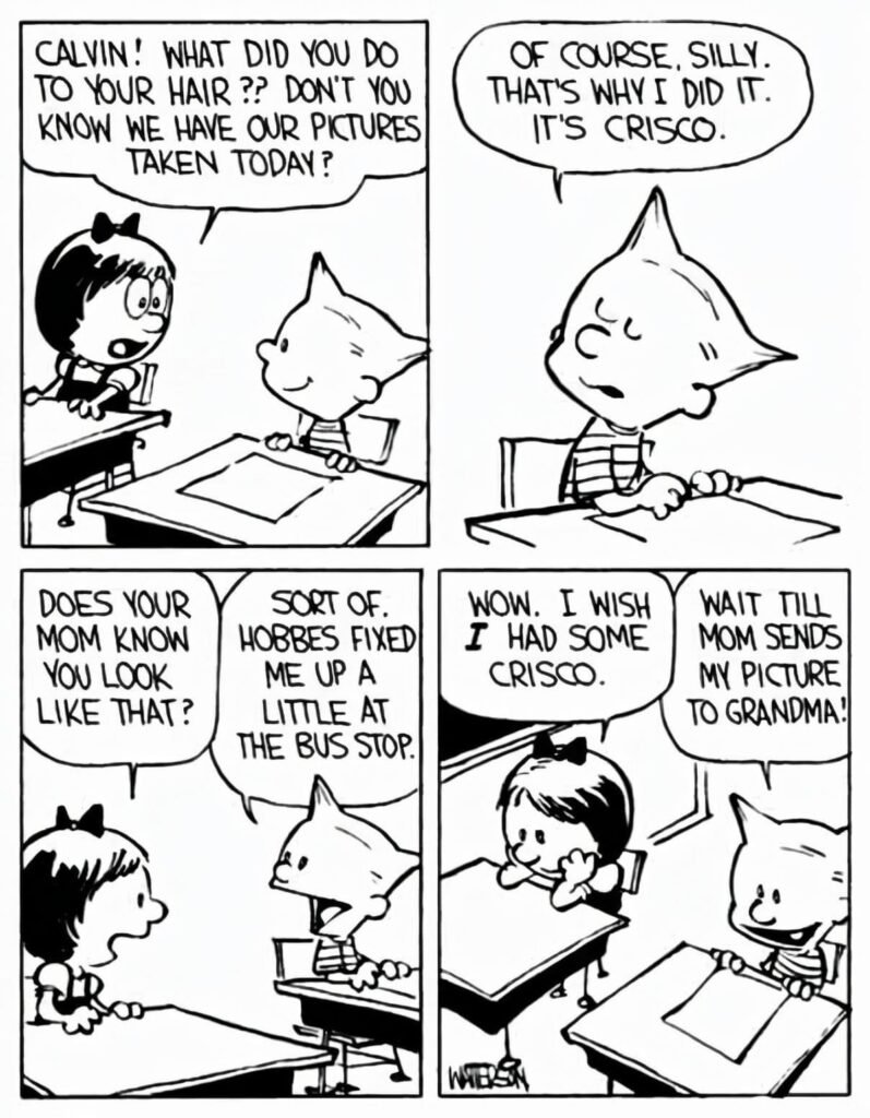 The strip is also great for talking about feelings. Calvin gets angry, jealous, bored, and lonely. He throws tantrums and gets in trouble. Seeing a character act out like this can help your child understand their own emotions. You can ask, “Why do you think Calvin got so mad?” or “What could he have done differently?” Hobbes often acts as the voice of reason, helping Calvin see things in a new light . This models how friends can help each other. You can talk about how Hobbes is a good friend to Calvin, even when Calvin is being difficult, reinforcing the values of patience, loyalty, and kindness in friendship .