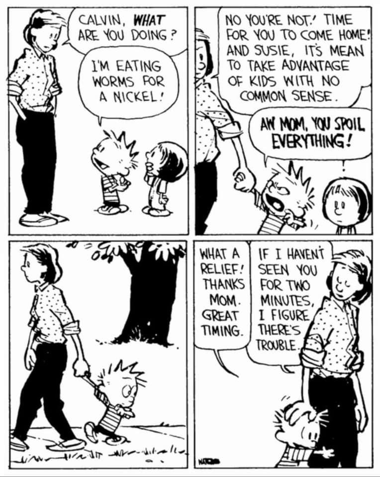 You might wonder, “Does it really matter what order I read a comic strip in?” The answer is yes, because Calvin and Hobbes is more than just a series of random gags. Over ten years, the characters develop. Calvin’s understanding of the world deepens, even if his grades don’t. Hobbes remains his constant, caring companion, offering dry wit when Calvin gets too full of himself .